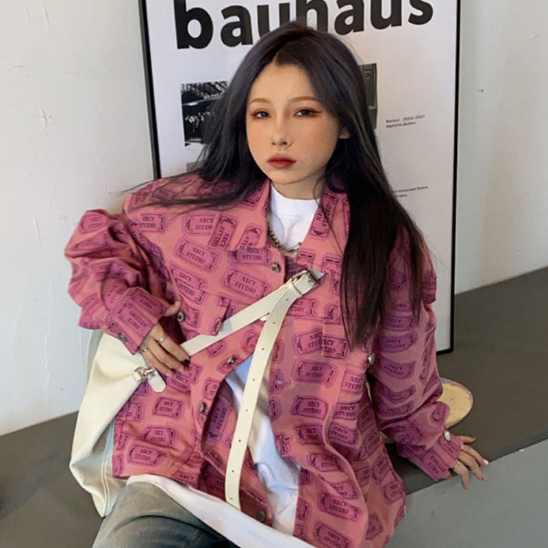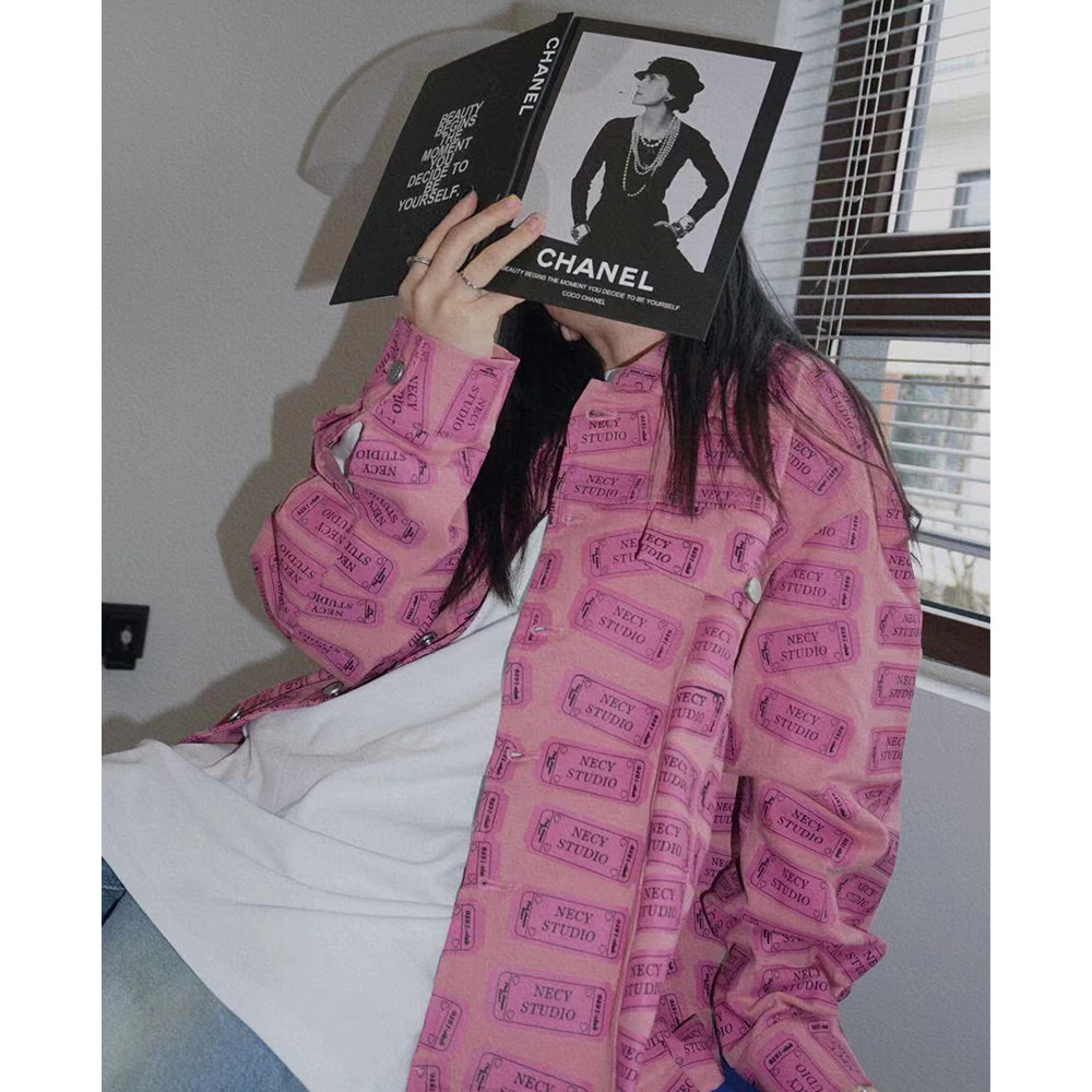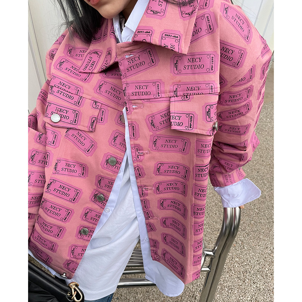 NECY high-precision full-stamp printed twill jacket female couple trendy fashion loose jacket oversize