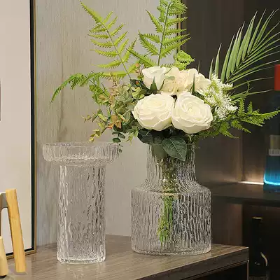 Simple light luxury ins transparent glass vase ornaments Nordic living room creative very Frozen Flower Net red flower flower arrangement
