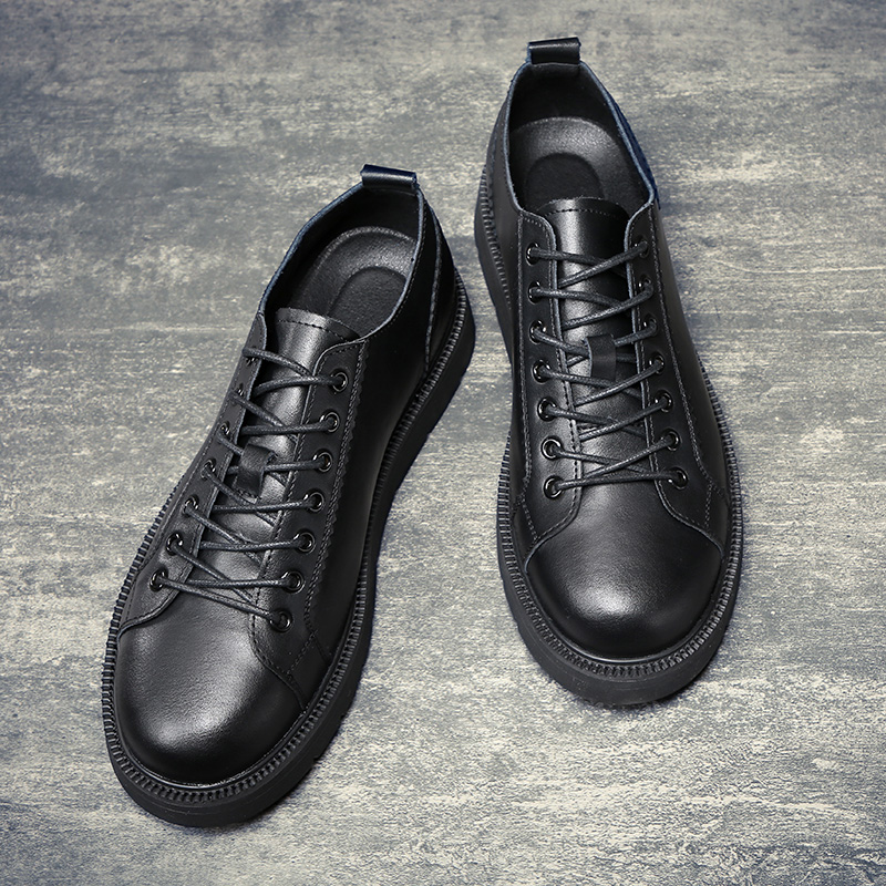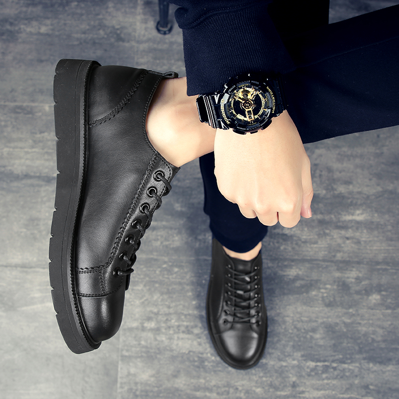 Men's shoes Summer wave shoes 2022 New men's casual leather shoes breathable 100 lap tooling shoes genuine leather low Help Martin boots
