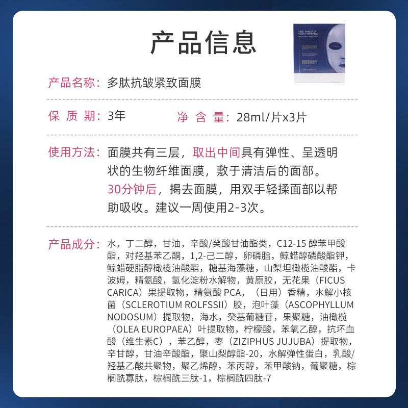Factory Shipment-Dad Review Polypeptide Anti-Wrinkle Mask Hydrating Moisturizing Lifting Firming Fading Fine Lines 3 Pieces Box