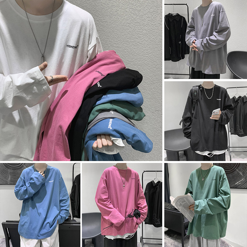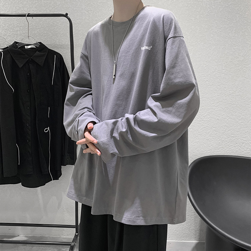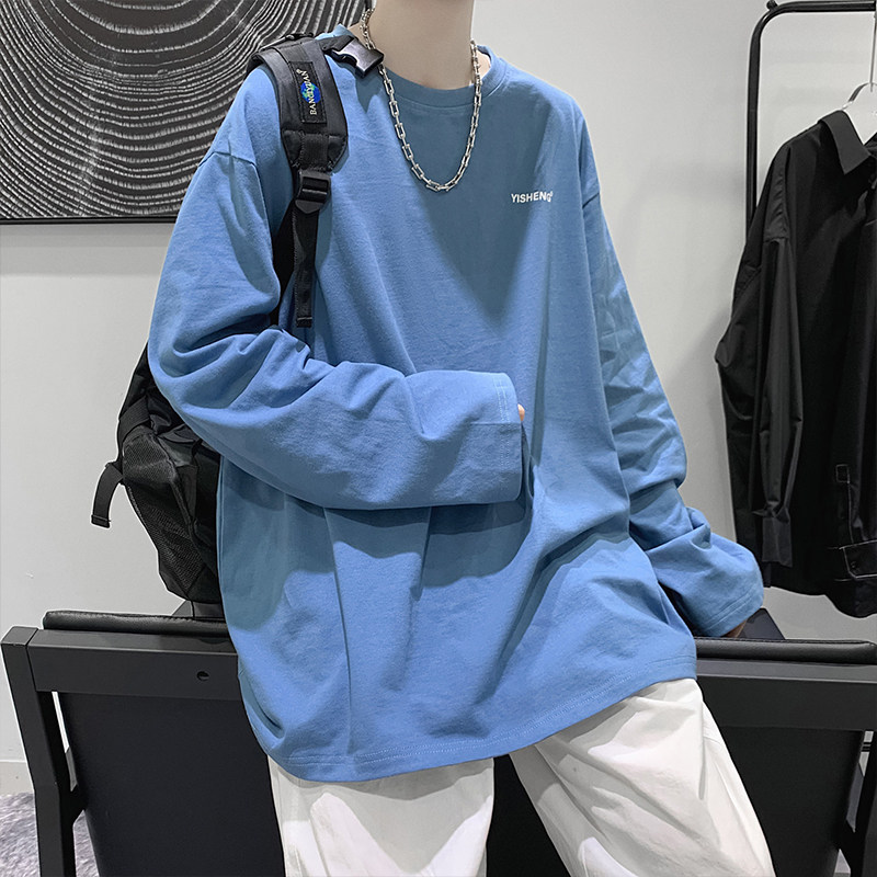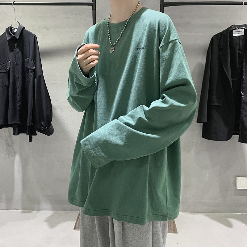 Pure colour long sleeve T-shirt male tide card 100 lap casual inner lap clothes relaxed bf trends Inn windsweaters with a lap of autumn clothing