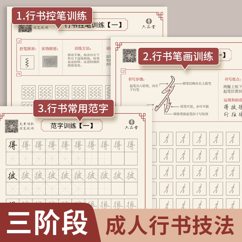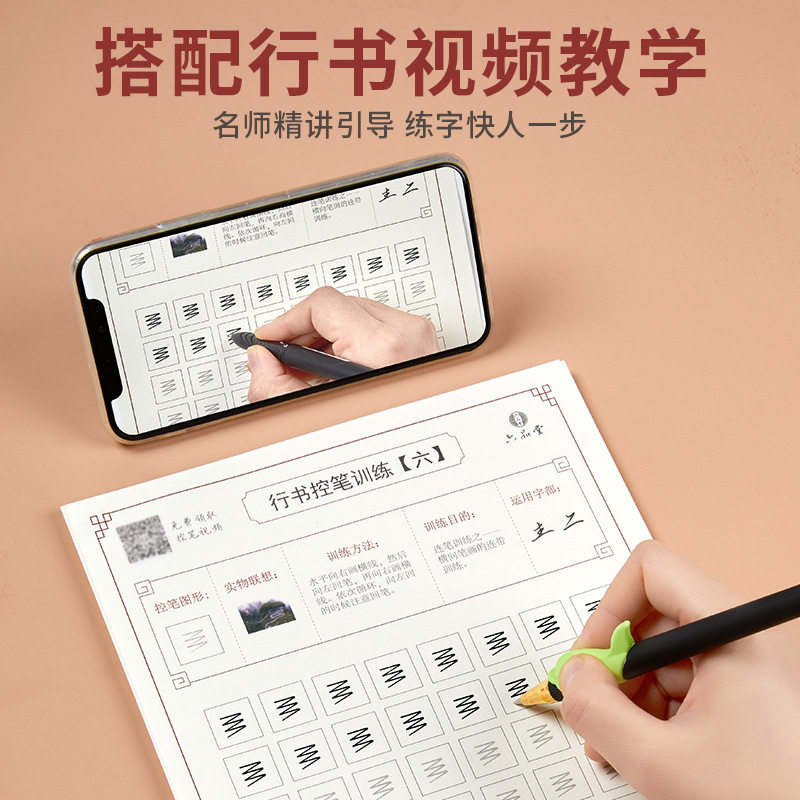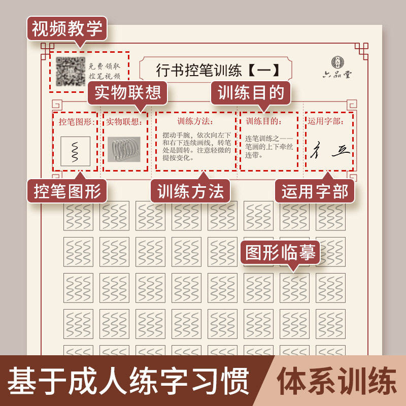 Adult Calligraphy Control Pen Training Poster College Beginner Beginner Basic Calligraphy Pretty Practice Drawing Red Practice Poster Children's Kindergarten 21 Days System Handwriting Practice Poster First Grade
