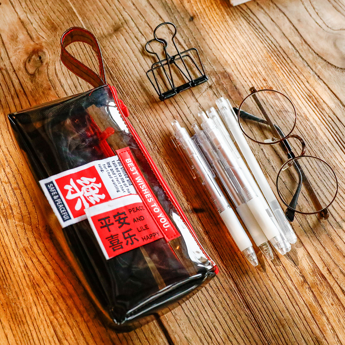 Simple double pen bag Transparent PVC national tide text storage bag Large capacity student supplies storage bag