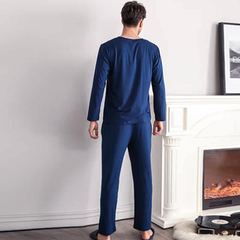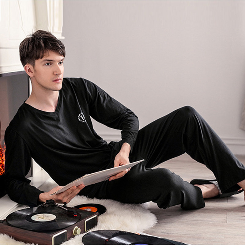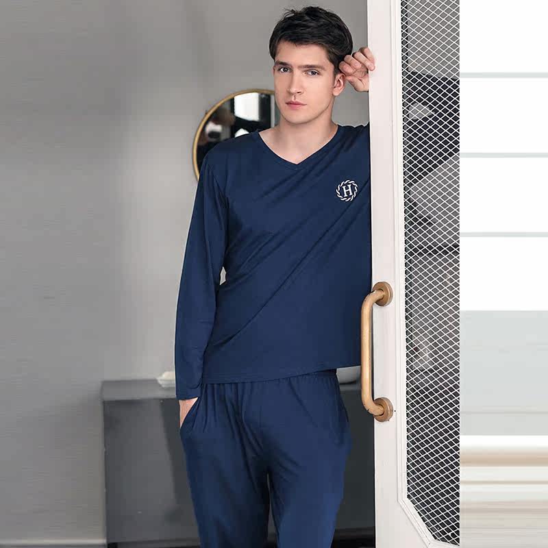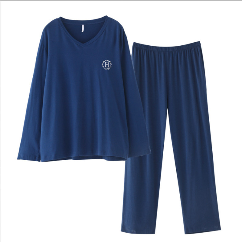 Pajamas men spring and autumn long sleeve Model thin large size home suit can be worn outside two pieces
