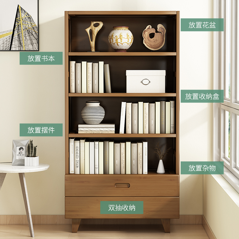 Children's desktop multi-layer Nanzhu large-capacity solid wood bookcase bookshelf floor-to-ceiling simple modern storage shelf raised