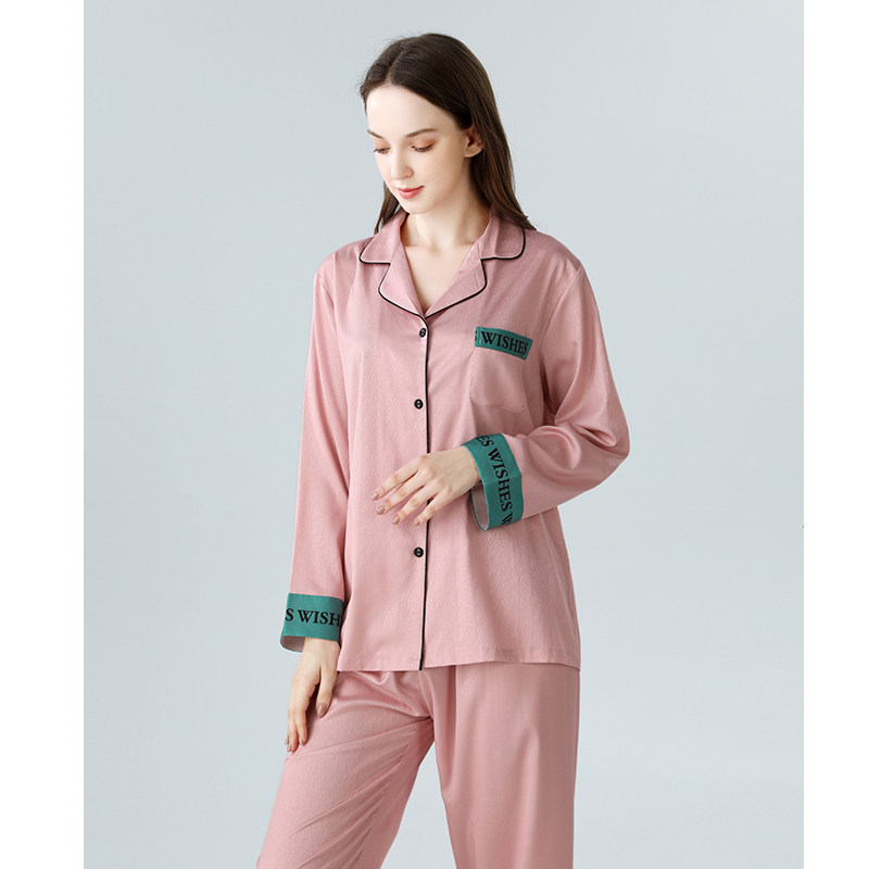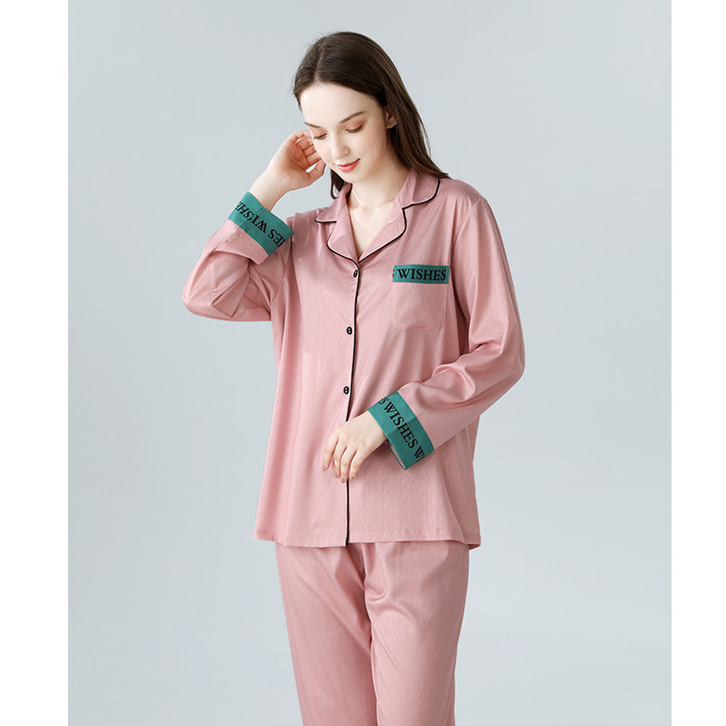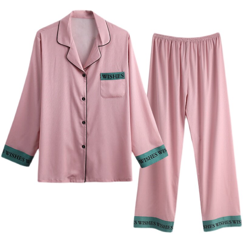 IIZZINI 2022 New Pyjamas Woman Spring Autumn Long Sleeve Ice Silk Brief Letters Long Pants 2 Pieces Home Suit Suit