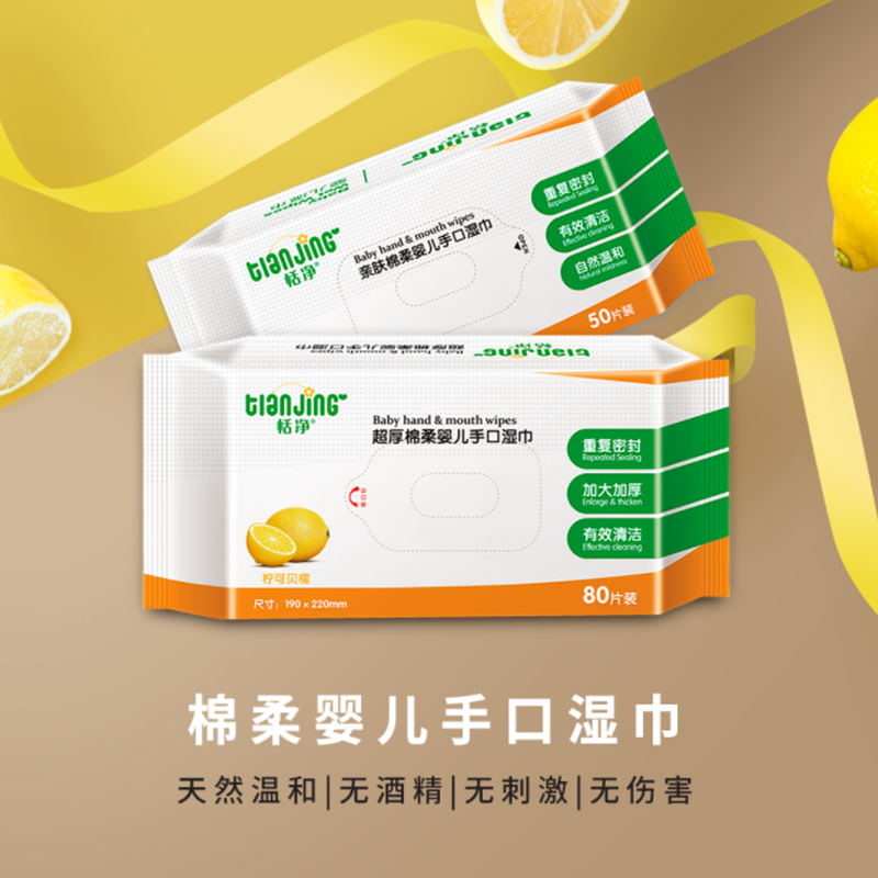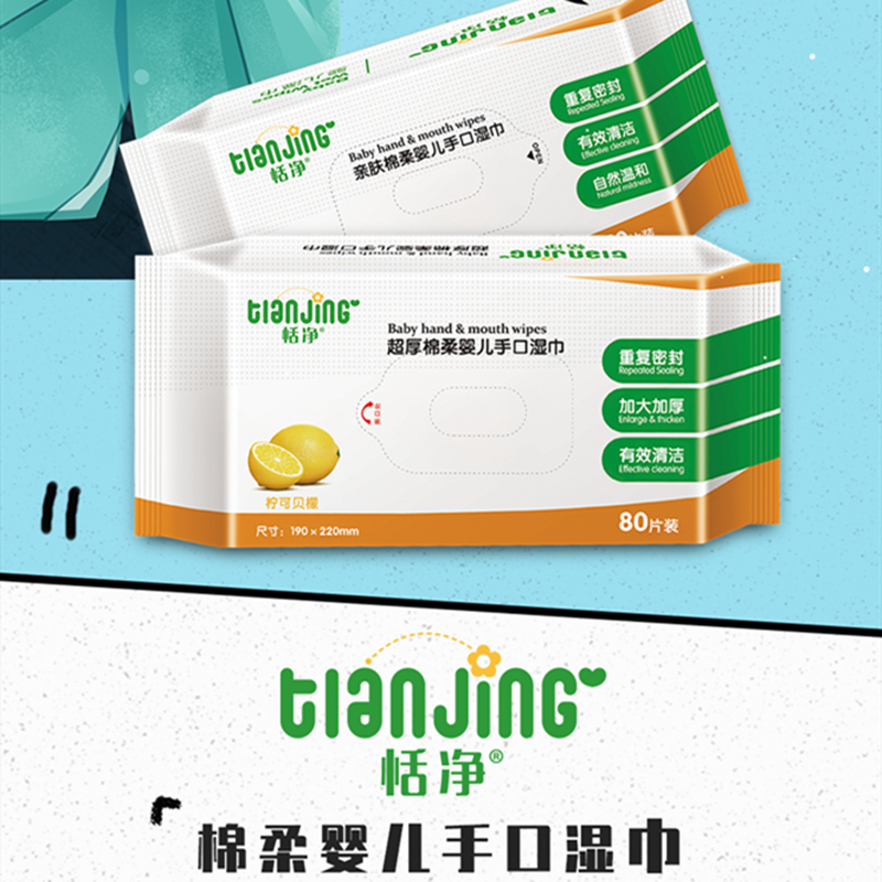 Tianjing baby wipes skin-friendly soft hand and mouth wipes super thick and extra soft pure water sanitary wet wipes 80 pumping 2 packs