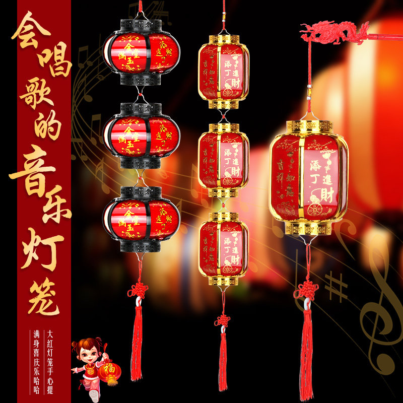 New Year's Spring Festival decorations Chinese-style portable luminous music lanterns small red palace lanterns New Year's Day New Year's decoration supplies