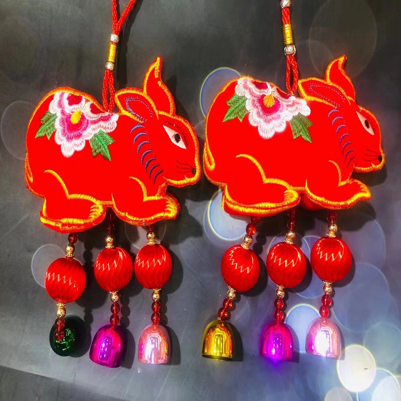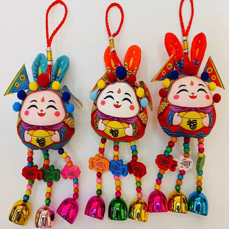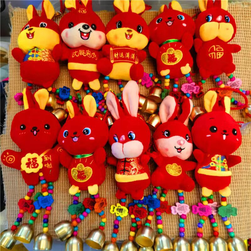 2023 Year of the Rabbit Mascot Plush Zodiac Rabbit Wind Chime Pendant New Year Company Party Decoration Small Gift Ornament