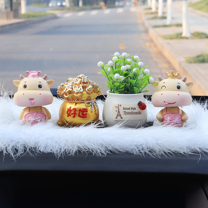 Car ornaments creative cute car cartoon shaking head Bull year doll safe center console interior decoration Encyclopedia