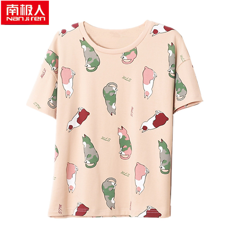 Antarctic people pure cotton pajamas top one-piece women's summer short-sleeved thin cotton loose large-size home clothes 200 catties s