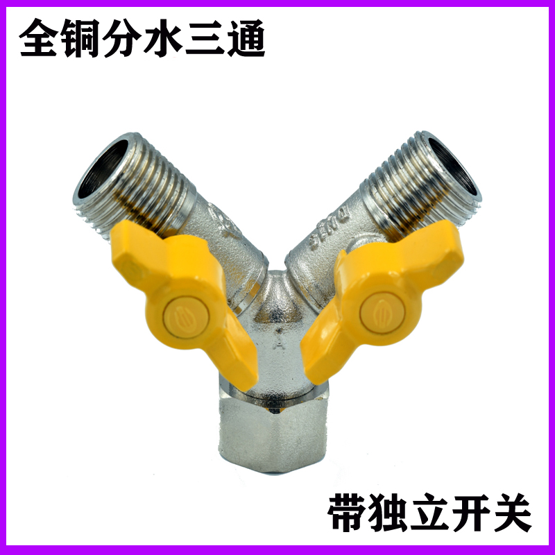 One-in-two-out tap joint thickened 4-point all-copper water-splitting three-way quick-plug simple installation outlet water divider