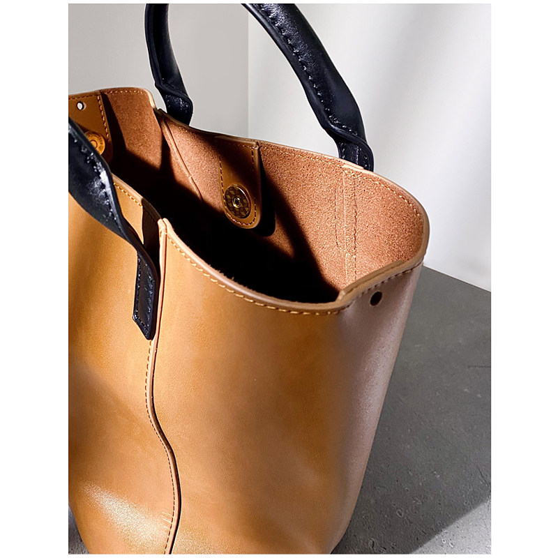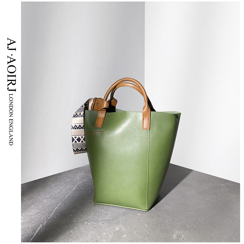 British small AJ AOIRJ niche design brand high - texture retro - leather bucket bag