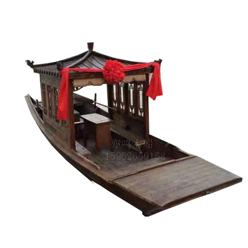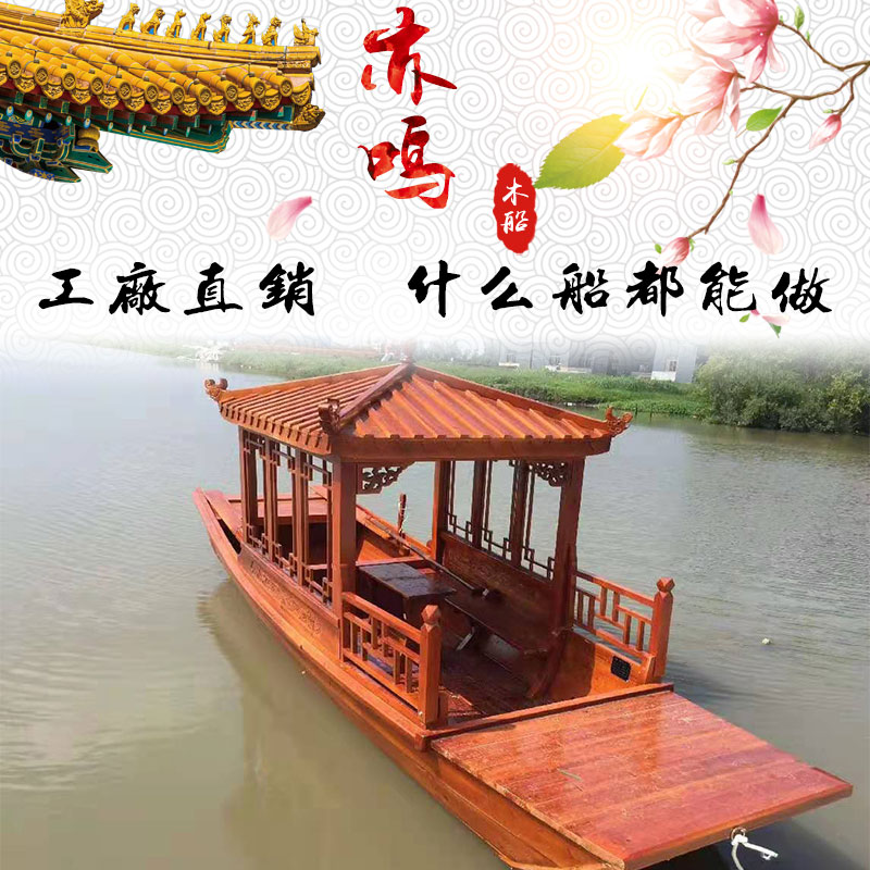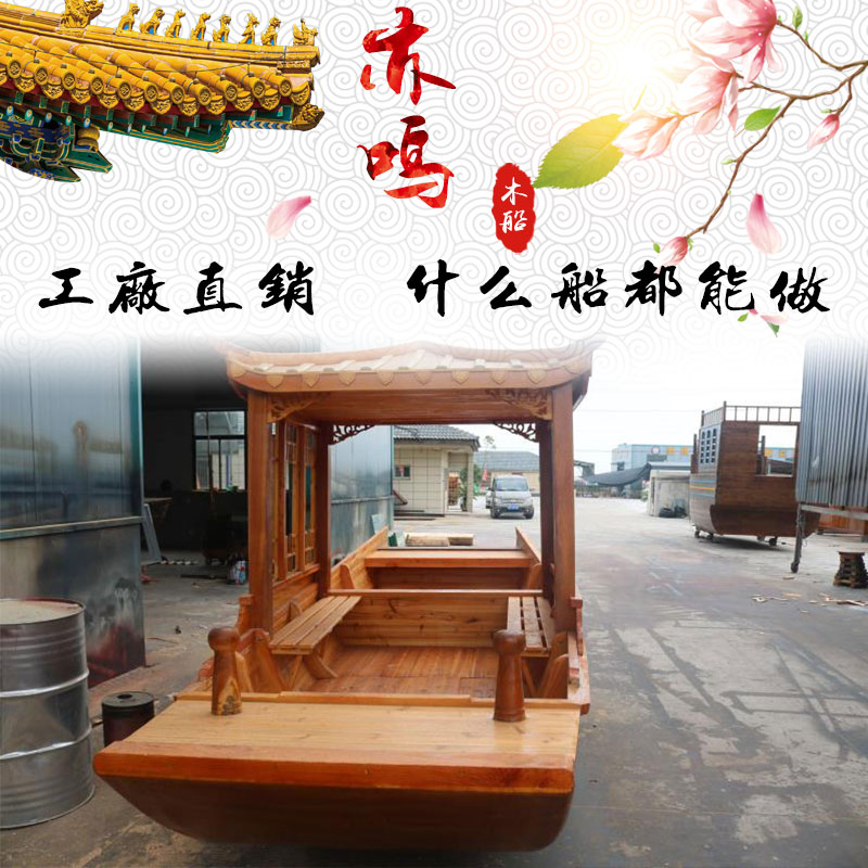 Chinese-style ancient wooden boat tourism sightseeing photography single boat electric wooden boat boat boat boat customization