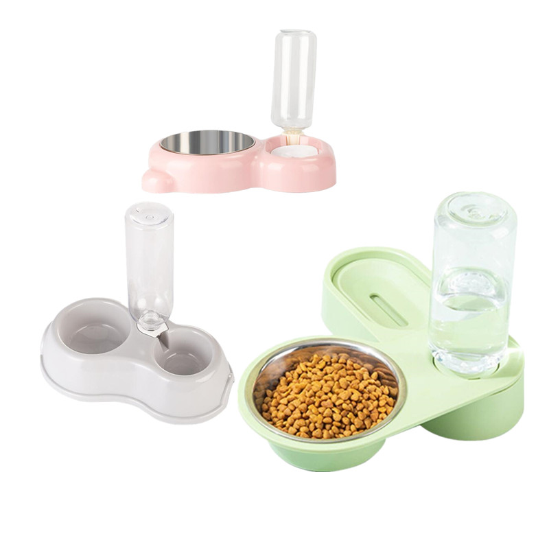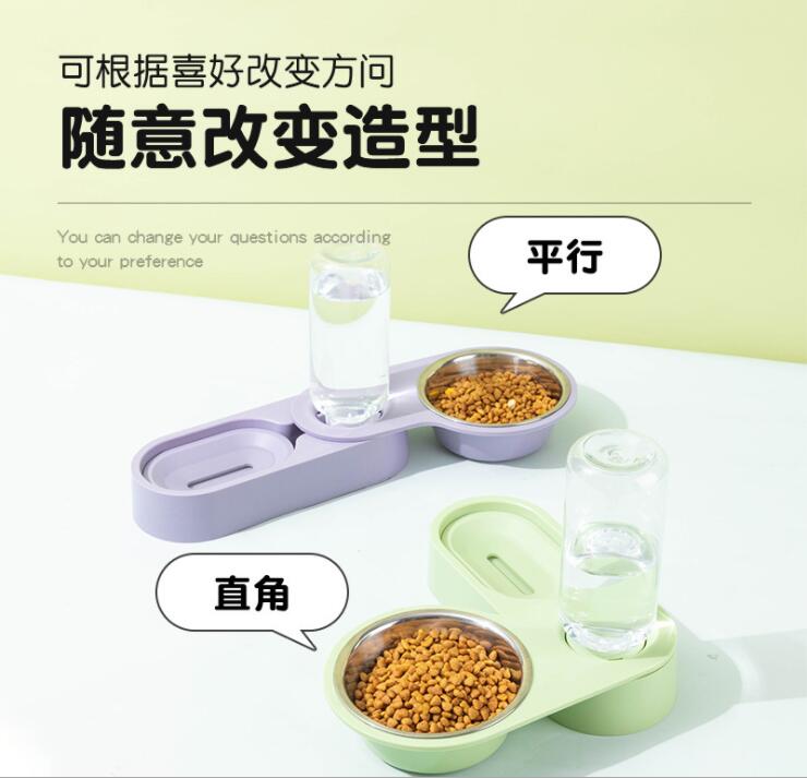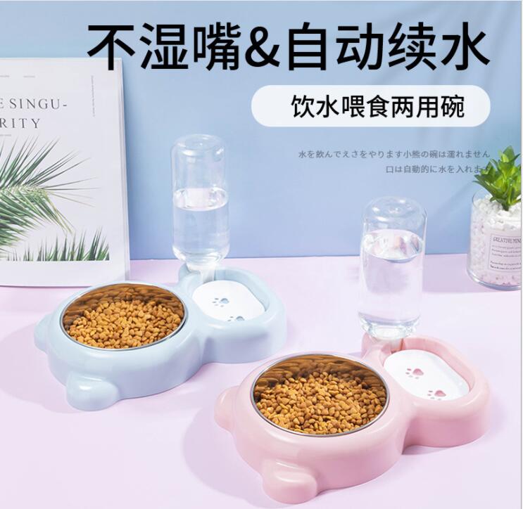 Dog bowl dog bowl anti-overturning stainless steel small dog and dog plate pet cat bowl food bowl cat bowl double bowl automatic drinking water
