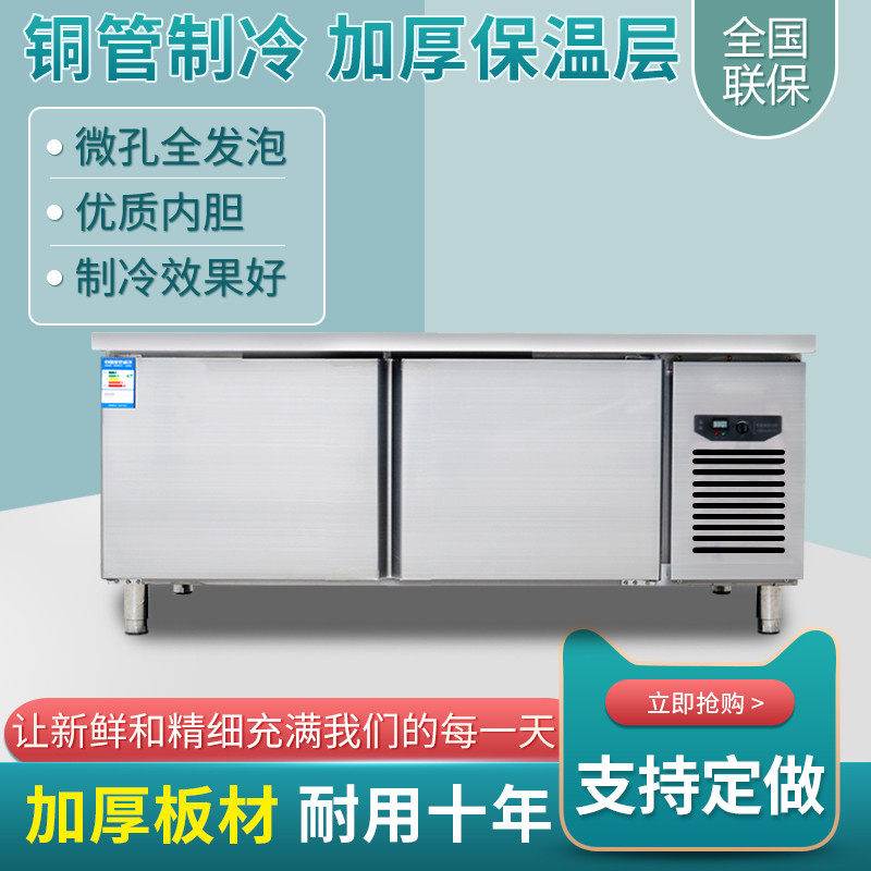 Refrigeration freezing operation table freezer stainless steel refrigerator kitchen chopping board flat cold workbench commercial milk tea shop freezer
