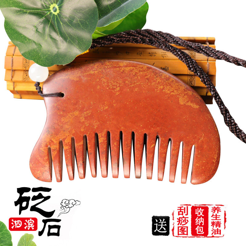 Red Needle Stone Comb Massage Comb Head Scalp Fascia Meridians Meridians Scraping Comb of Surabaya Head Healing Natural Jade