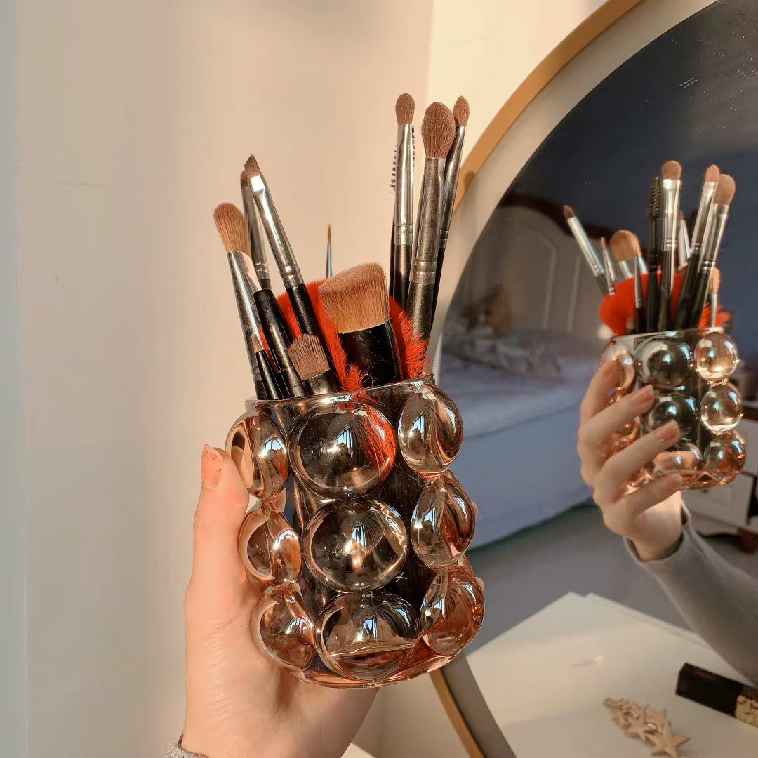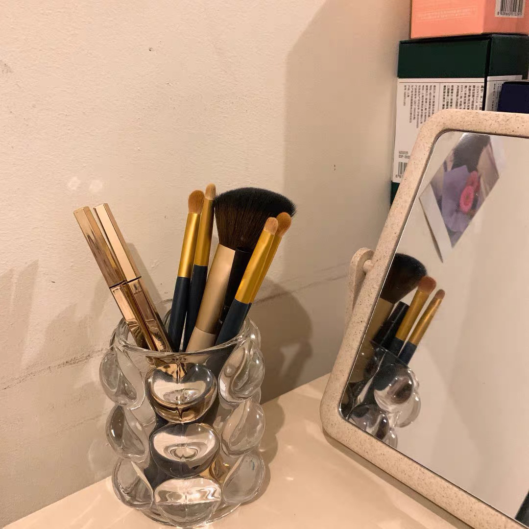 Korean ins wind ball glass transparent storage pen holder Niche decoration makeup brush bucket Bedroom desktop small ornaments