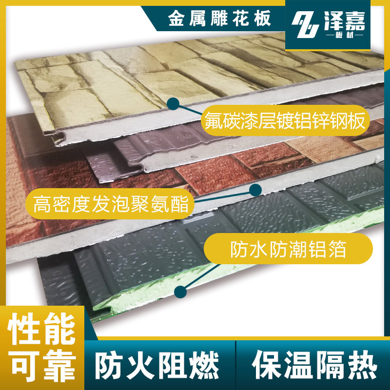 Metal carved board external wall insulation decoration integrated board fireproof moisture insulation villa board room polyurethane sandwich board
