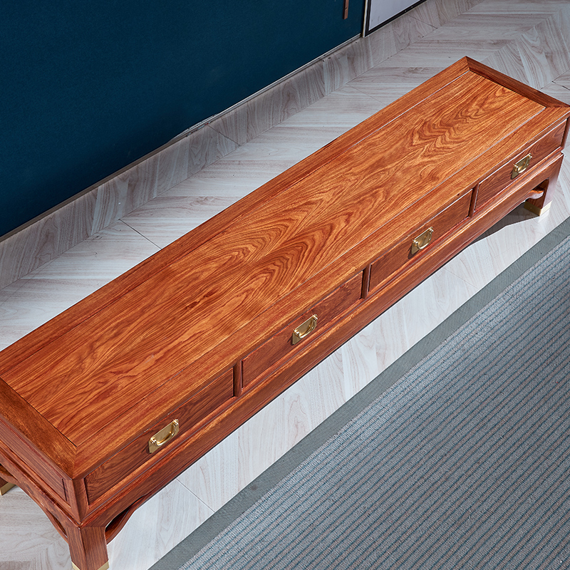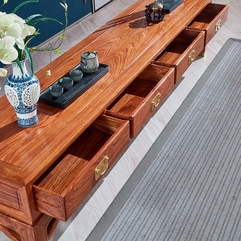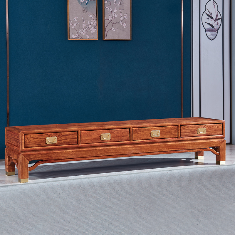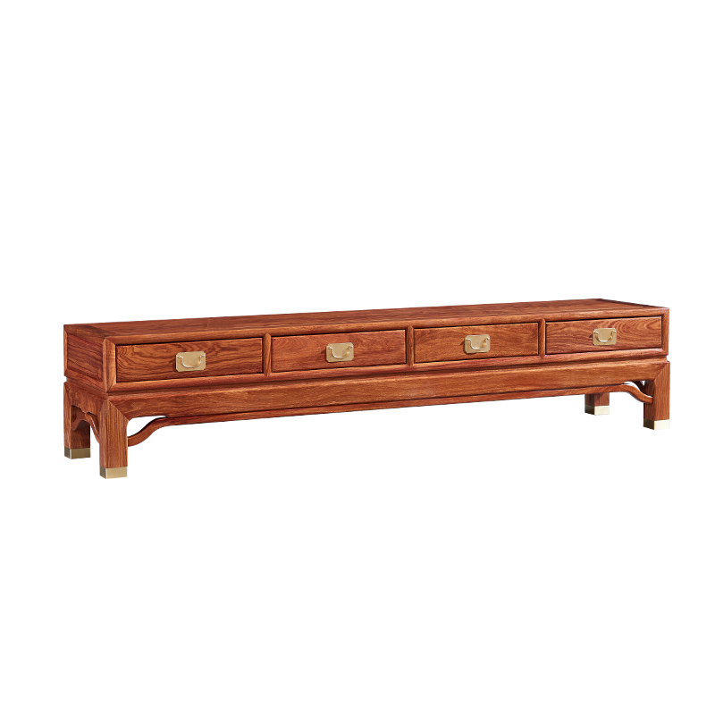 Red Wood TV Cabinet Full Solid Wood New Chinese Style Hedgehog Purple Sandalwood Log Living Room Ground Cabinet Yellow Flowers Pear Combined Chinese Furniture