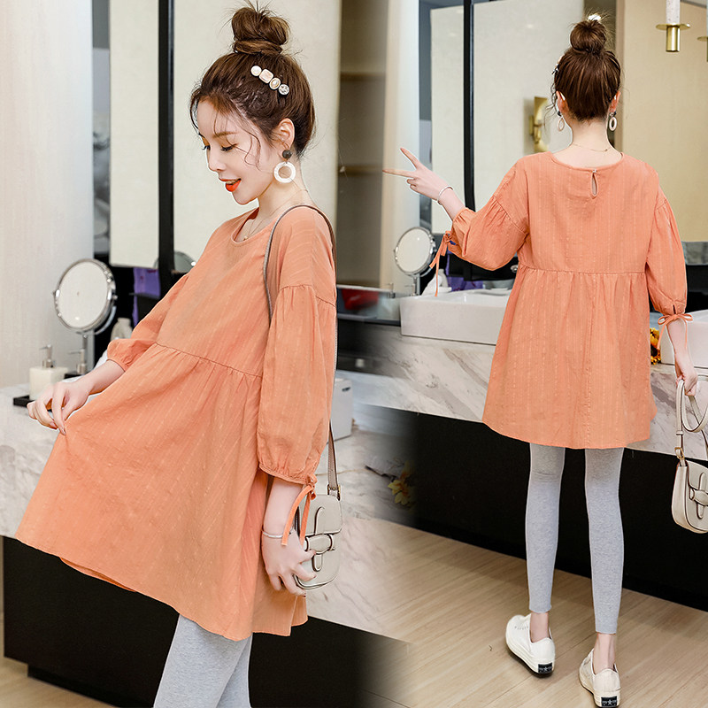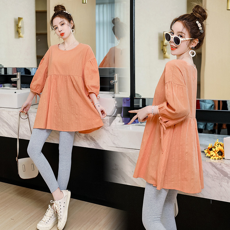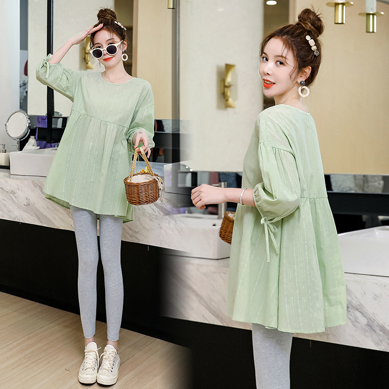 Pregnant woman doll shirt Summer thin shirt fashion suit Tide mother foreign style summer loose top Pregnant woman women