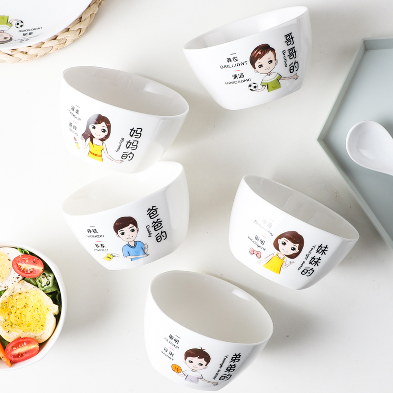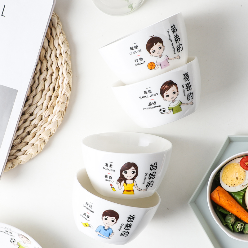Ceramic Rice Bowl Home Parenting Bowl A 3-45-one-one-bowl family name Bowl Creative Cutlery Sets