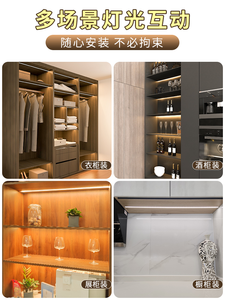 Ultra-thin dark LED lamp embedded lamp with cabinet lamp long line shoe cabinet induction lamp