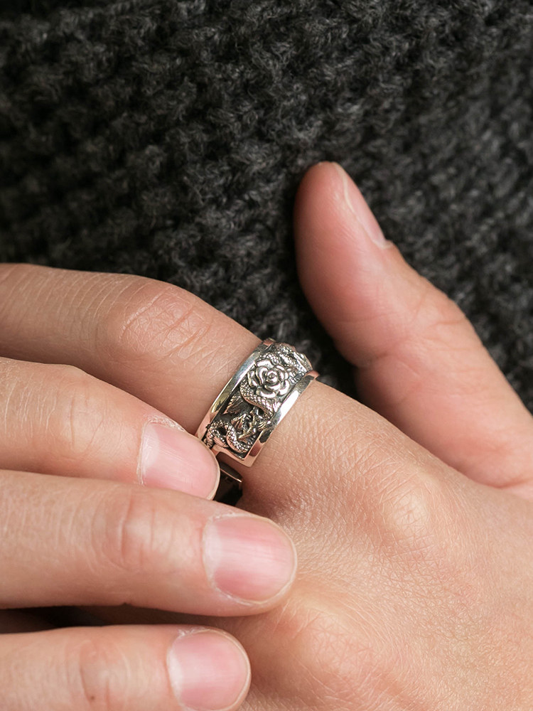 ruibeila (secret)rose double snake winding ring for men and women 925 silver vintage Thai silver hip hop ring tide