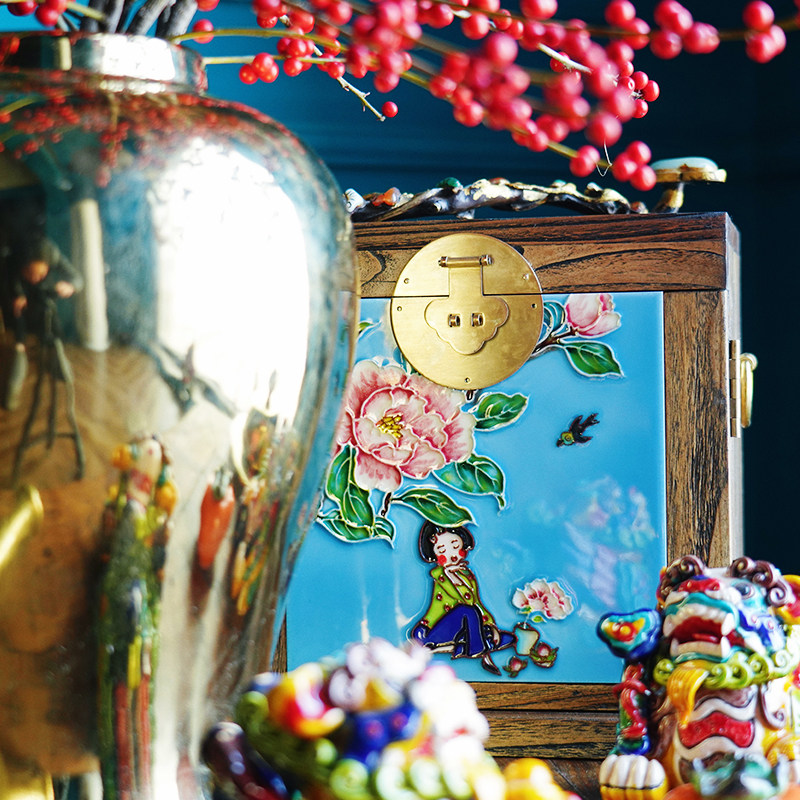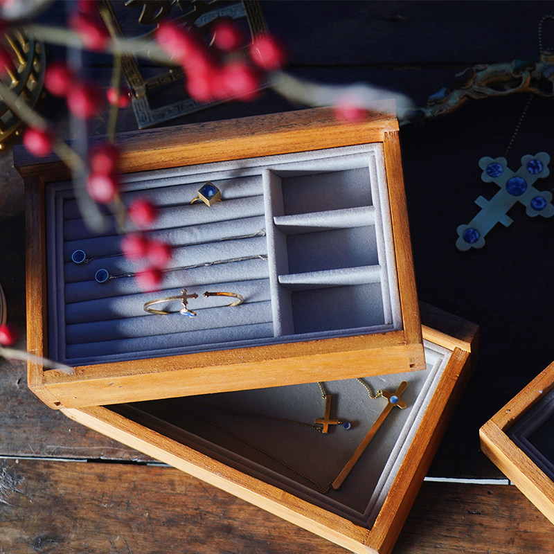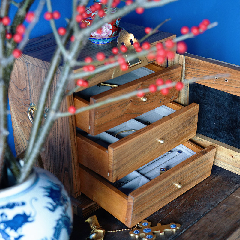 Solid wood bauxite jewelry box ceramic retro jewelry box with lock jewelry box New Chinese home decoration