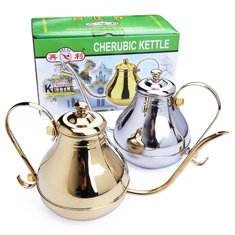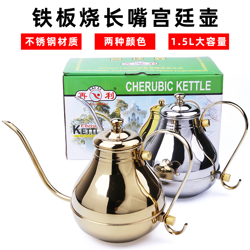 Palace Pot Stainless Steel Oil Pot Fine Mouth Long Mouth Ear Hung Teapot Hand Flush Coffee Maker Iron Plate Burning Dining Room Commercial Teapot