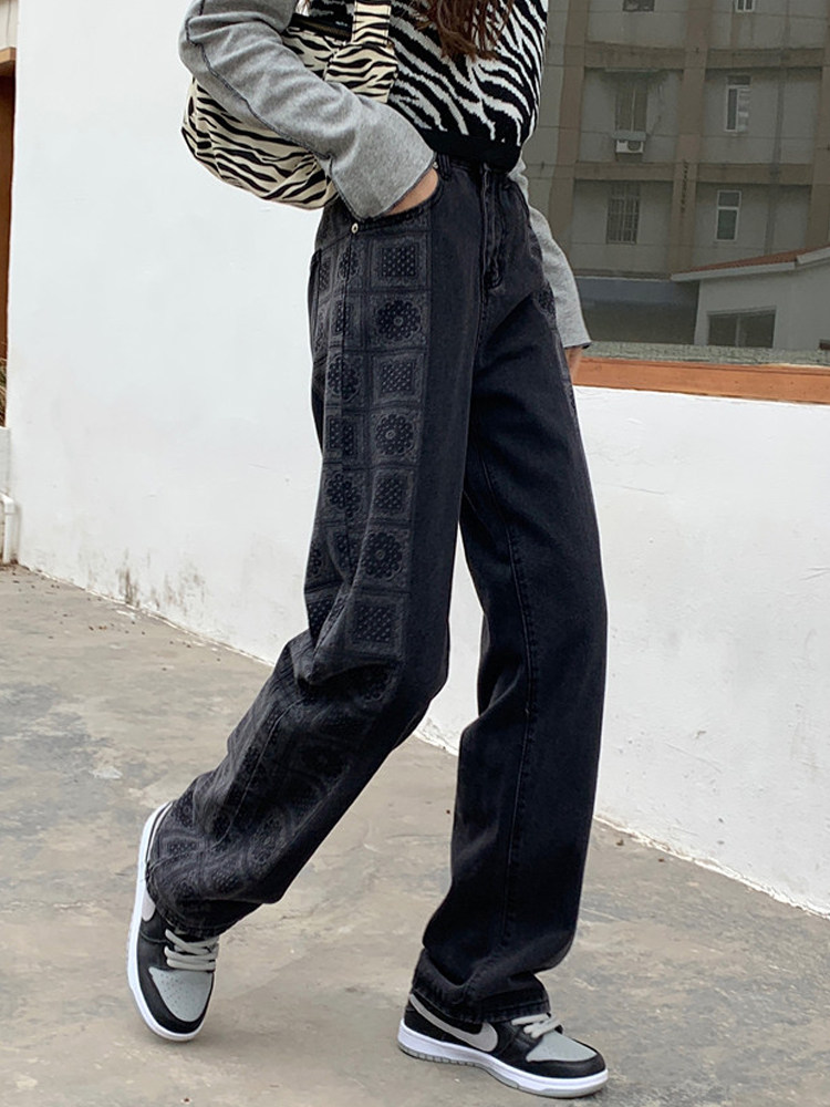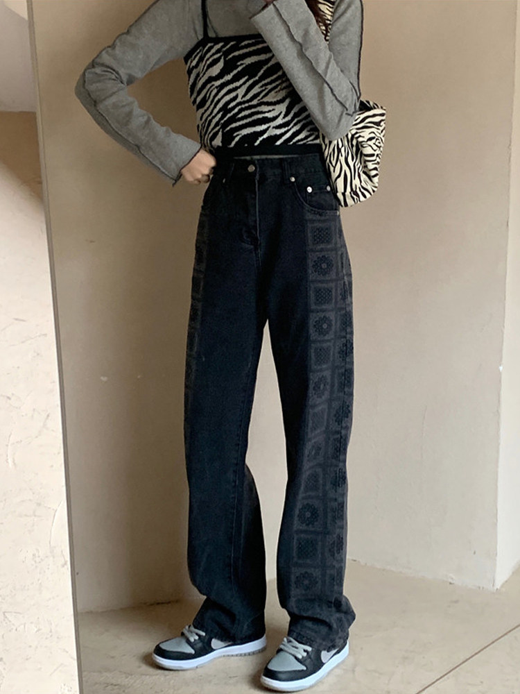 Large size wide leg jeans women's 2021 new spring loose straight thin pants trendy ins high street Harajuku style