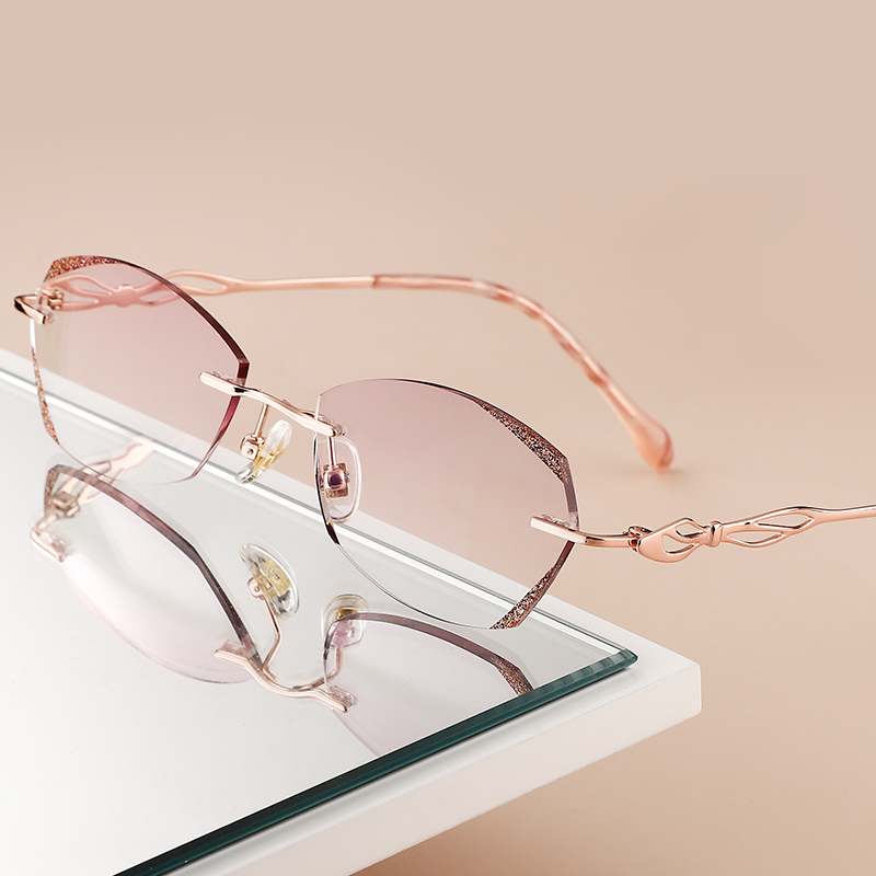 Frameless trimming presbyopia fashion high-definition anti-blue light anti-fatigue high-end imported fashion glasses women's brand