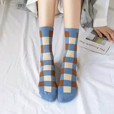 Zhuji City Bin Wei Knitting Factory 20 Autumn and Winter New Blue Plaid Socks Women's Retro Street Socks