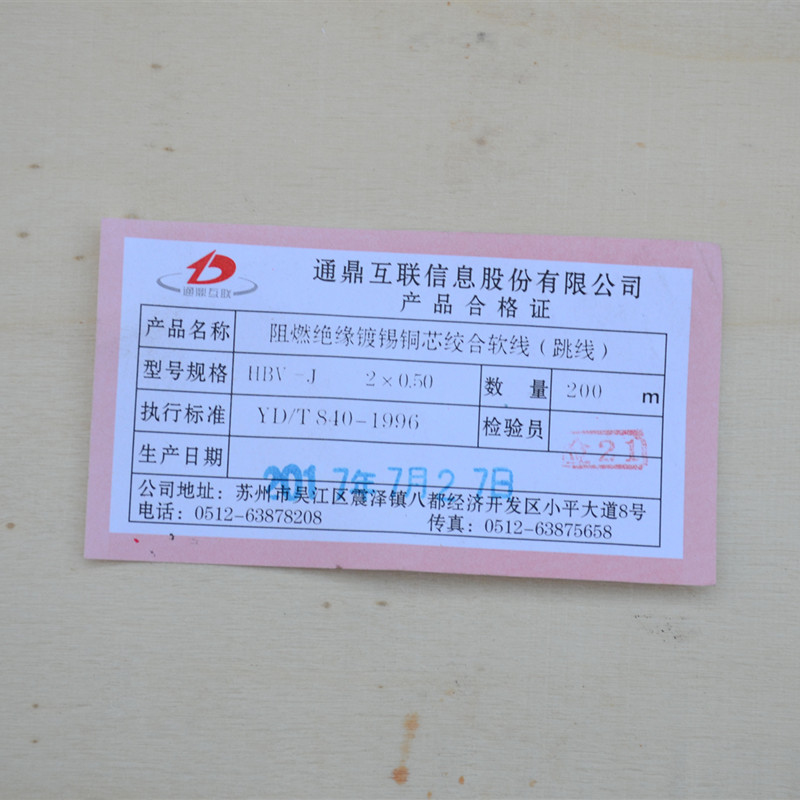 Original Tongding pure copper flame retardant insulation tin-plated twisted pair telephone line HBV2*0 5 two-core telephone jumper