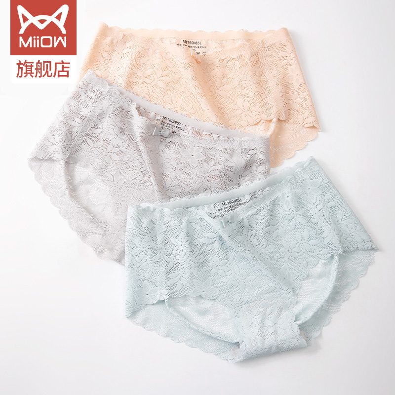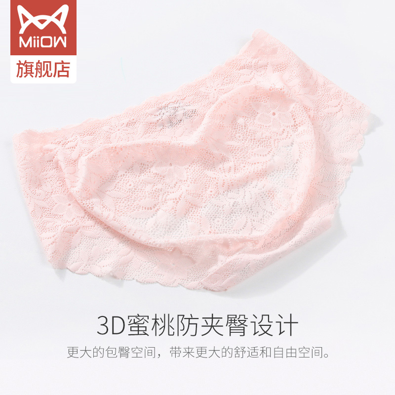 Cat human lace sexy honey peach hip lady underpants big size ice silk No scratches thin bacteriostatic crotch pure desire mid-waist shorts head