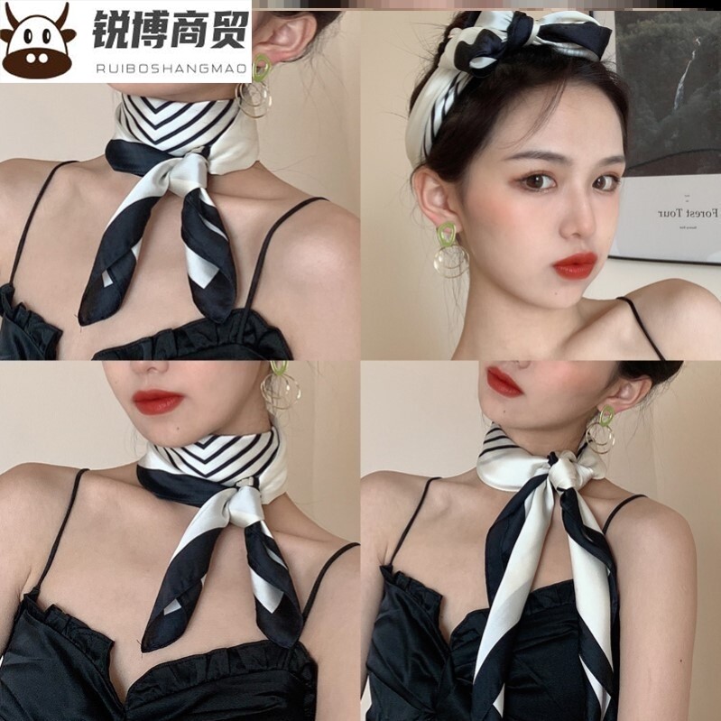 Korean small square scarf female Korean version all-match long strip sunscreen collarbone silk scarf thin section net red headband scarf spring and autumn scarf