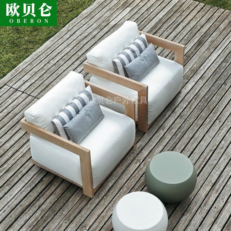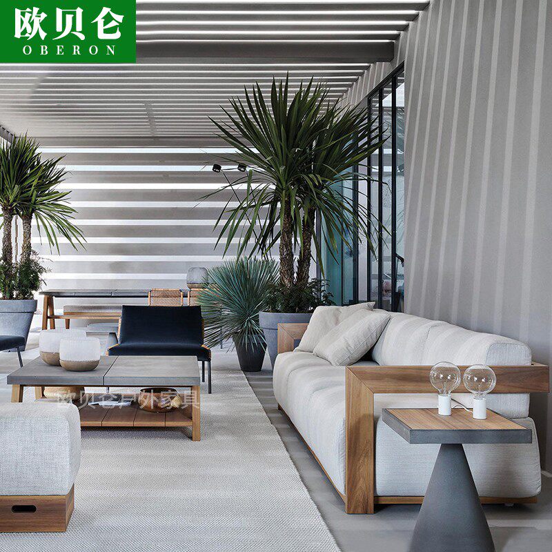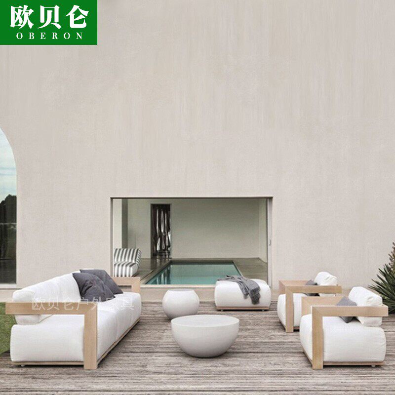 Outdoor high-end teak sofa outdoor courtyard waterproof sunscreen furniture designer villa hotel anti-corrosion wood sofa