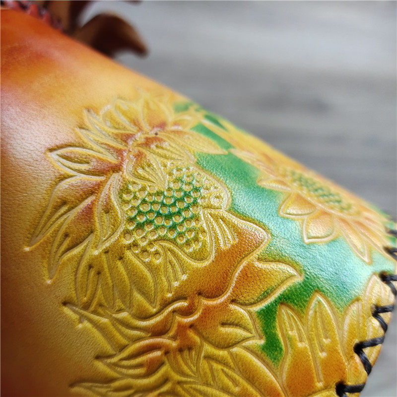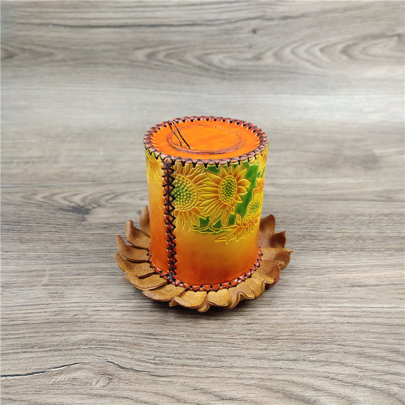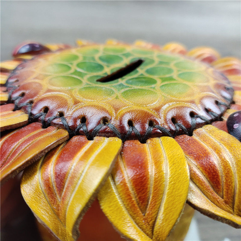 Cow Leather Handmade Sunflower Deposit money pot desktop Small swing piece Home Ornament Cute Idi Garden Genuine Leather Creativity Small Gift