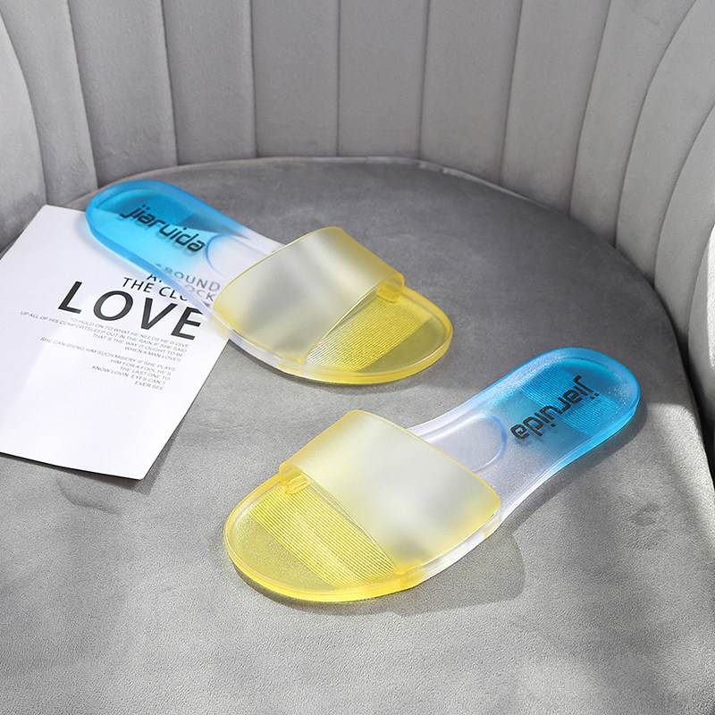 New Fashion Crystal Sandals Sandals Women Summer Jelly lined with Ins social flat-bottomed Korean version net red slippers