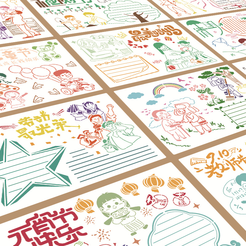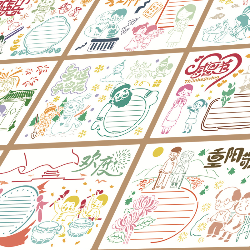 A3 Junior High School 8K Divine Instrumental Traditional Homework Mid-Autumn Festival Hand Transcript Templates Hollowed-out Festival Ruler Third Grade Material Elementary School