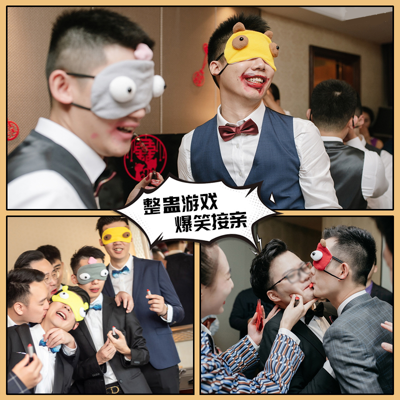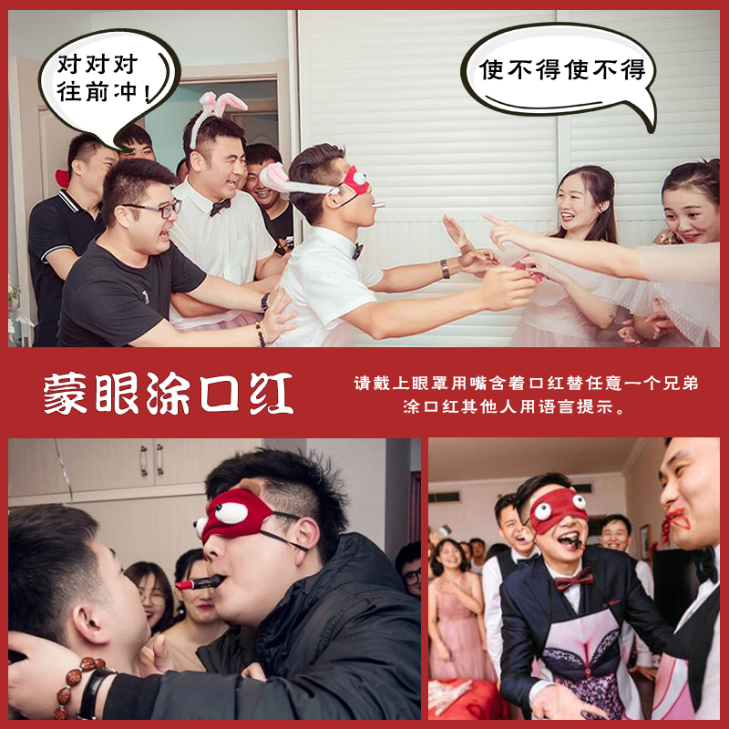 Pick up the wedding, block the door, blindfold, apply lipstick