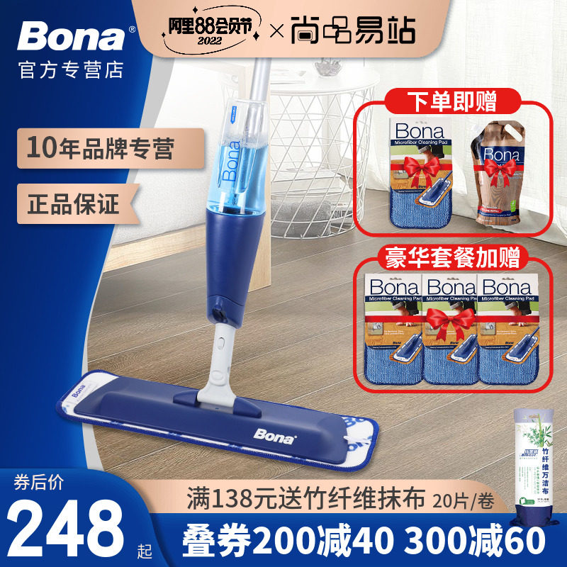 Bona Bona Water Touch Spray Flat Mop for Household Drag Dry Wet Dual-Use Floor Touch