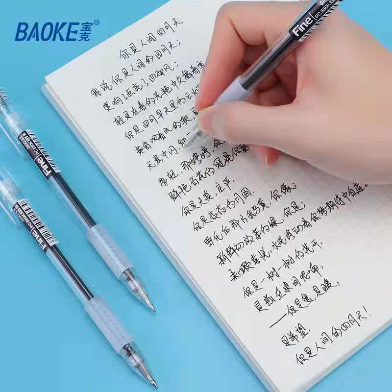 Baoke stationery transparent pen gel pen black blue red 0 5mm bullet water pen Business office student exam