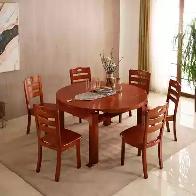Zhongwei solid wood dining table and chair combination simple modern retractable folding round table dual-purpose multifunctional small family Rice