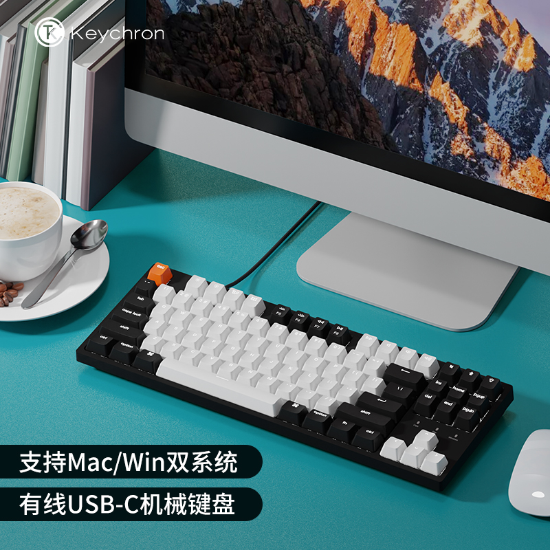 KeychronC1 C2 Keyline Separation Wired iPad Mac Office Private Computer Games Small Mechanical Keyboard Outer pick up 87 Hot Swap 104 Blue Axis Adaptation Apple Notebook Red