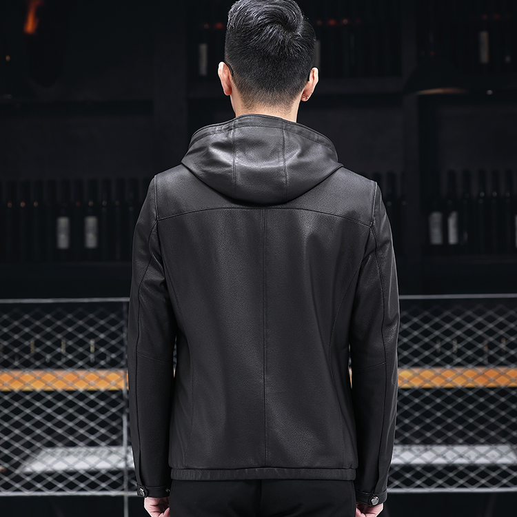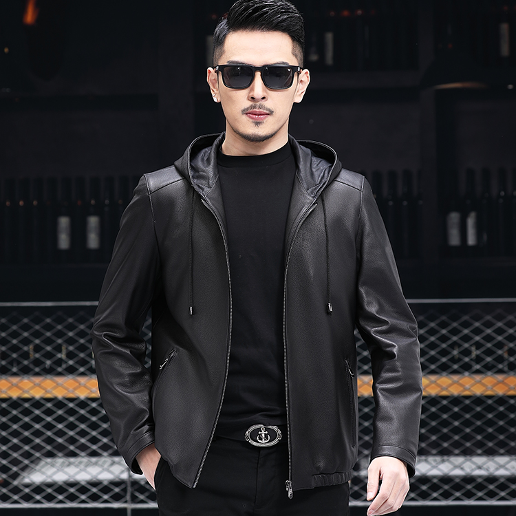 Haining leather jacket men's sheep leather jacket hooded thin deer leather jacket short plus velvet jacket
