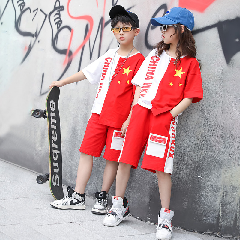 Kindergarten uniform summer short-sleeved suit Children's Day children's hip-hop hip-hop performance graduation class uniform primary school uniform