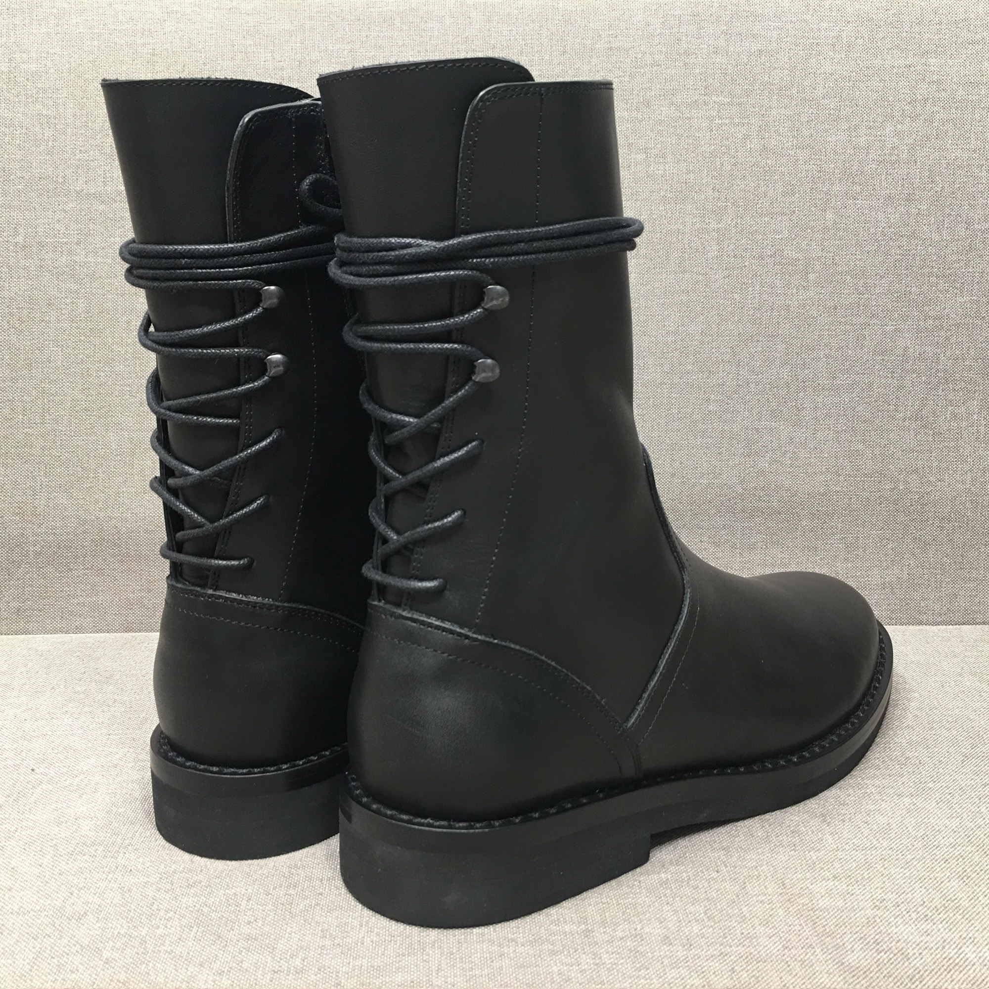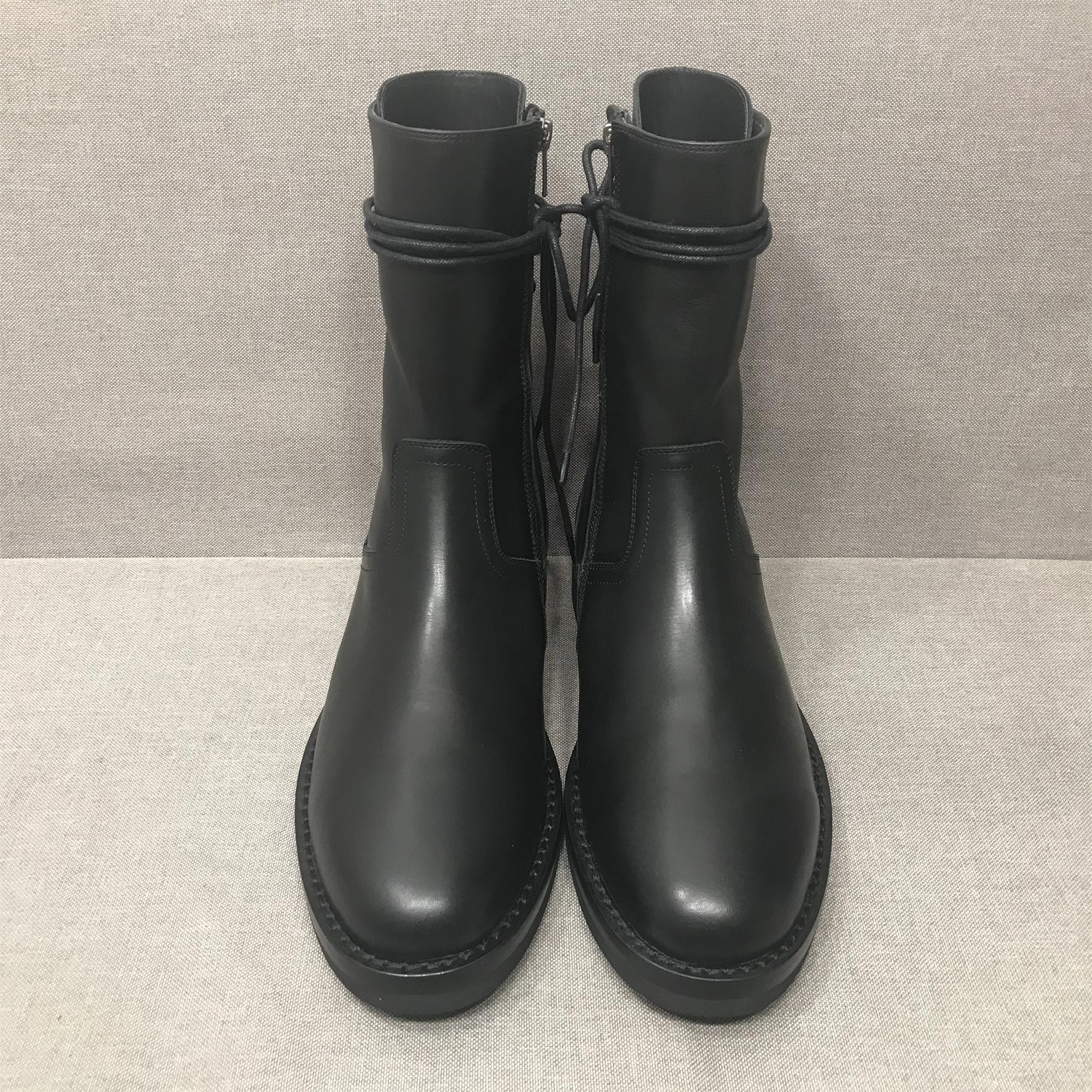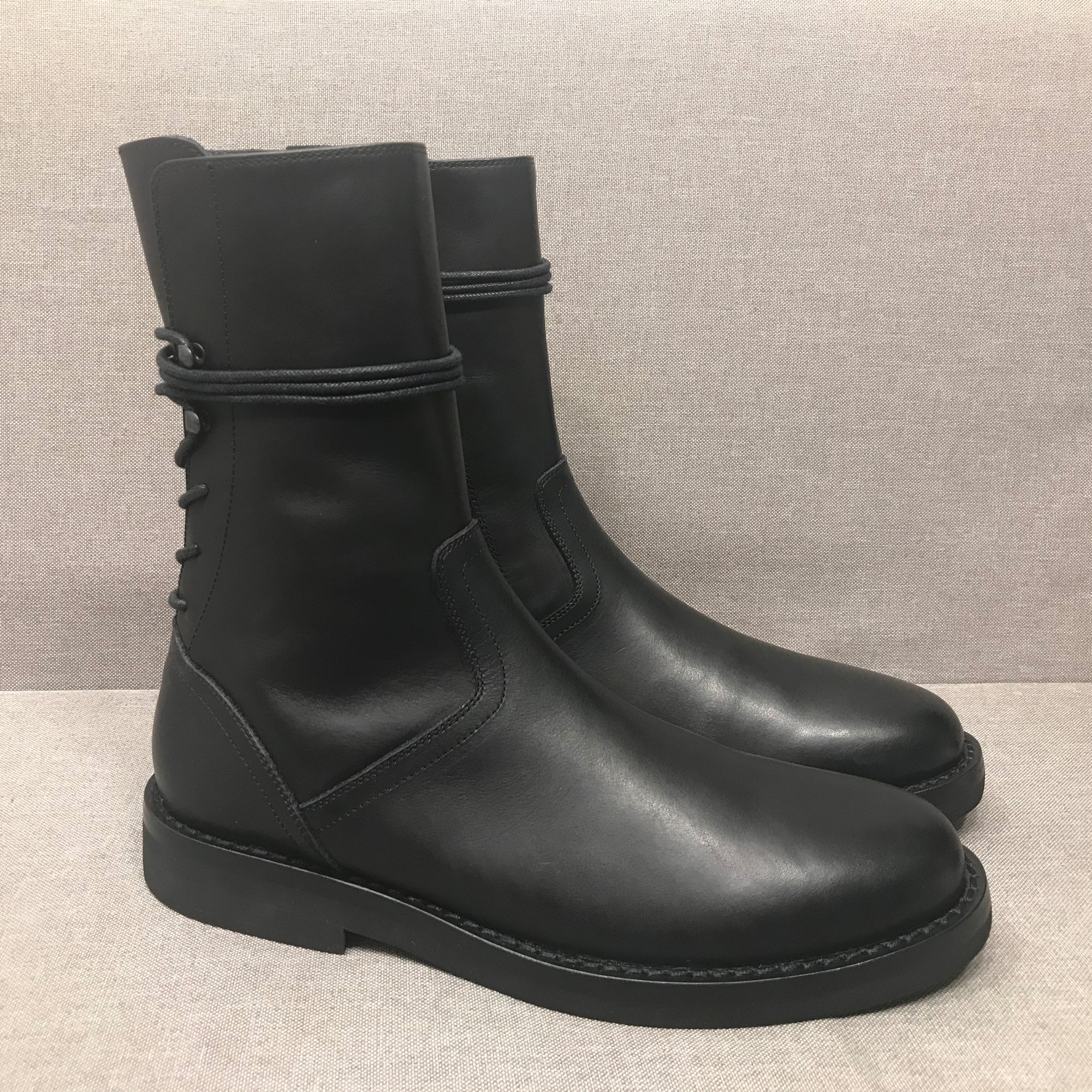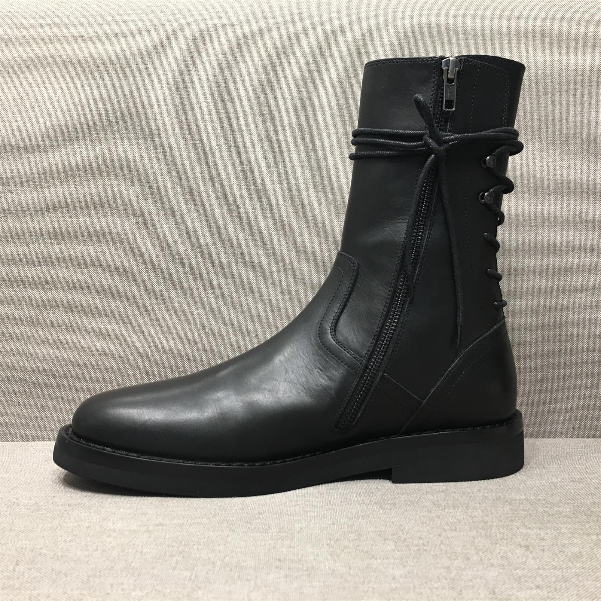 (Player shoes) ANN boots European style men's high top layer cowhide black rope retro boots