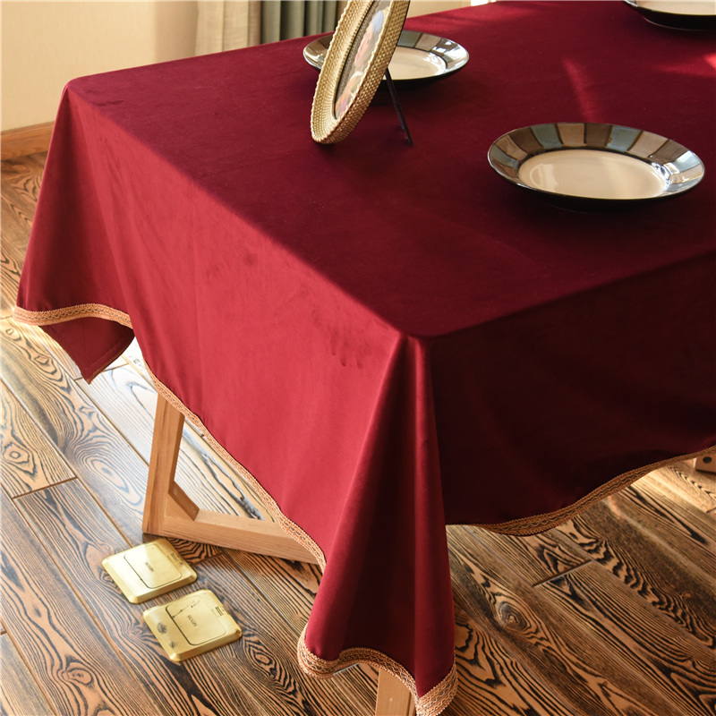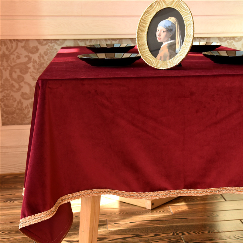 Red American tablecloth Light luxury style Gold velvet cloth tablecloth Dinner cloth lace Retro French thickened coffee table cloth