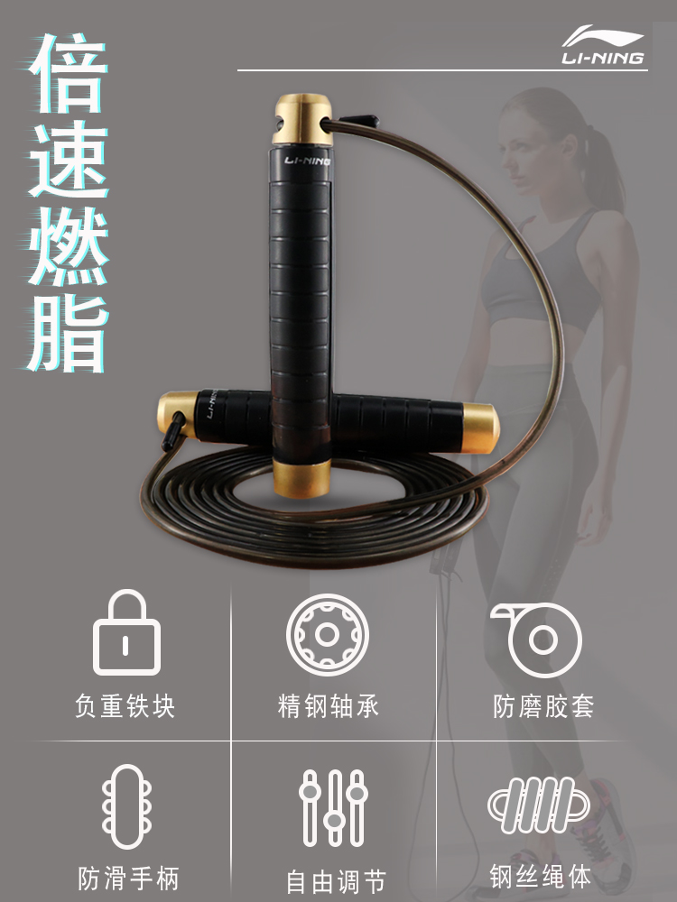 Li Ning Jump Rope Fitness Weight Loss Special Sports Fuel Fat Slimming Professional Rope Negative weight steel wire rope Men and women Adult